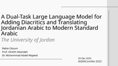 [18]A Dual-Task Large Language Model for Adding Diacritics and Translating Jordanian Arabic to Modern Standard Arabic